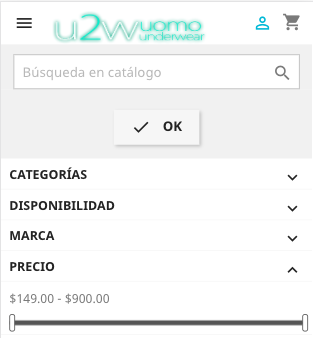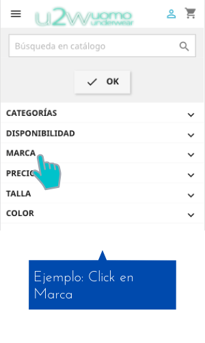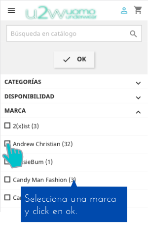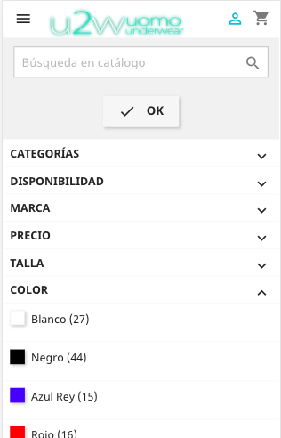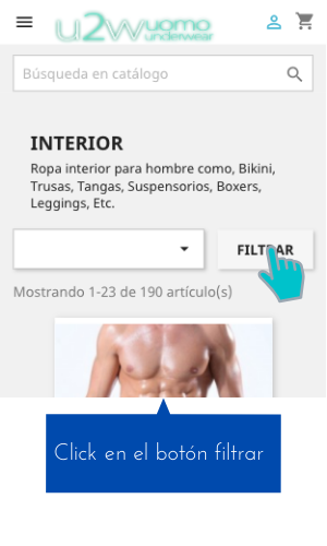 o bien dentro de una categoría (Interior, Bañadores, Fitness, Sexshop, Disfraces) puedes usar el Filtro de búsqueda: